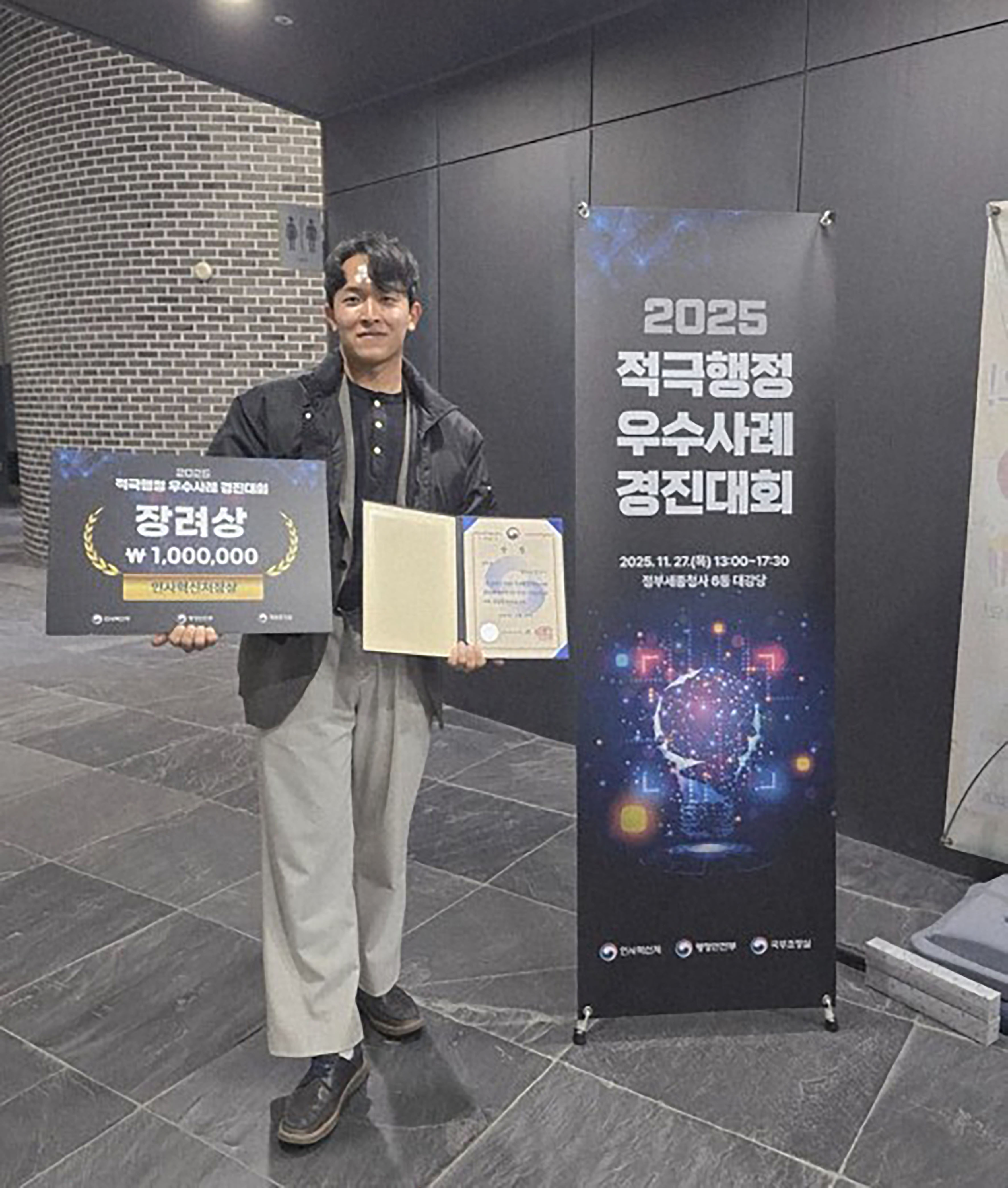 성남시, 2025 적극행정 우수사례 경진대회 ‘인사혁신처장상’ 수상 비개발자 코딩을 통한 행정효율화 페이지 구축을 위한 노력 인정받아    성남시(시장 신상진)는 행정안전부·인사혁신처·국무조정실이 공동 주관하는 ‘2025 적극행정 우수사례 경진대회’에서 지방자치단체 부문 장려상인 ‘인사혁신처장상’을 수상했다고 4일 밝혔다.이번 대회에서 성…