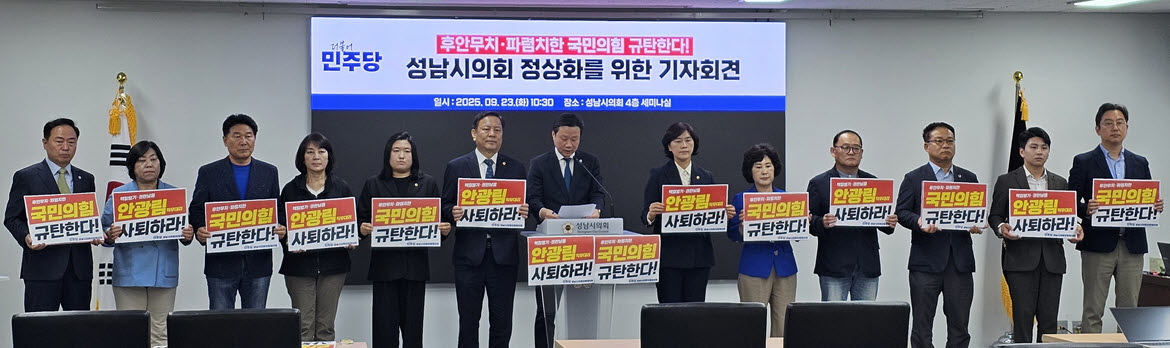 성남시의회 민주당협의회, 국민의힘 ‘반민주적 의사 운영’ 규탄