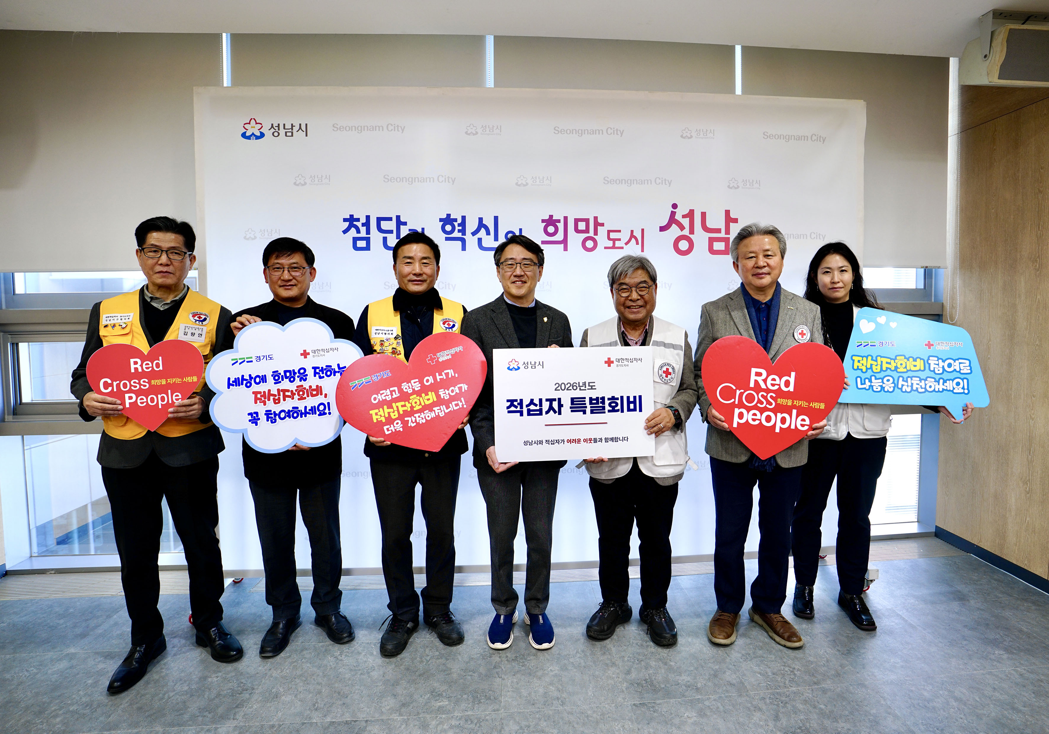 성남시 적십자 특별회비 300만원 전달 “도움이 필요한 이들에 힘이 됐으면 한다”  성남시는 ‘2026년도 적십자 특별회비’ 300만원을 대한적십자사 경기도지사에 전달했다고 23일 밝혔다. 전달식은 21일 시청 4층 제2회의실에서 임종철 성남시 부시장과 이재정 대한적십자사 경기도지사 회장, 적십자 봉사회 회원 등이 참석한 가운데 열렸다.&…