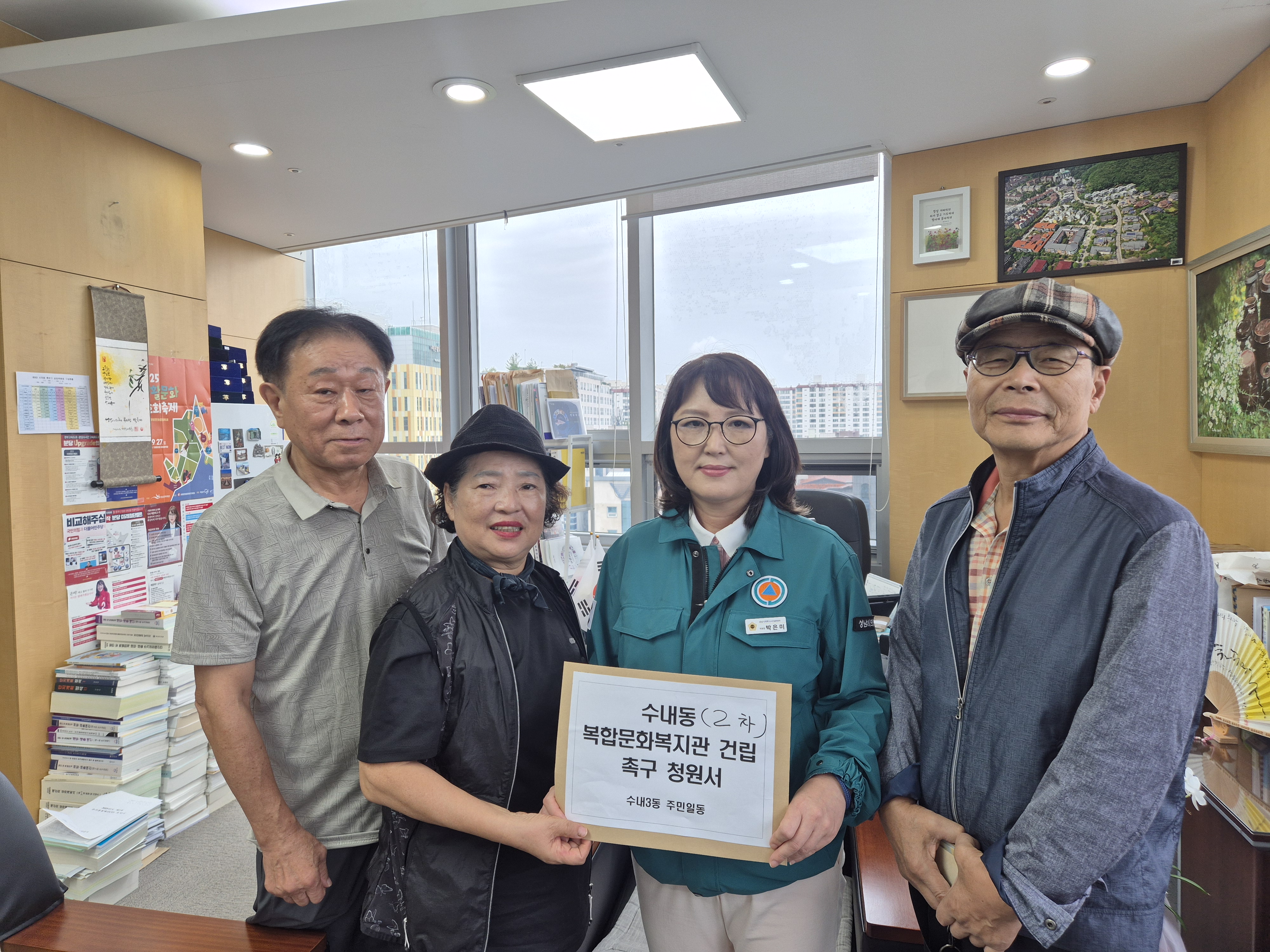 이어 “수내동 복합문화복지관 건립은 고령화와 저출생 문제를 함께 해결할 수 있는 생활밀착형 복지 인프라로, 이번 청원이 가결된 만큼, 성남시는 타당성 검토를 정책 과제로 공식화하고, 실행을 위한 첫걸음을 시작해 줄 것을 간곡히 요청한다”고 밝혔다.